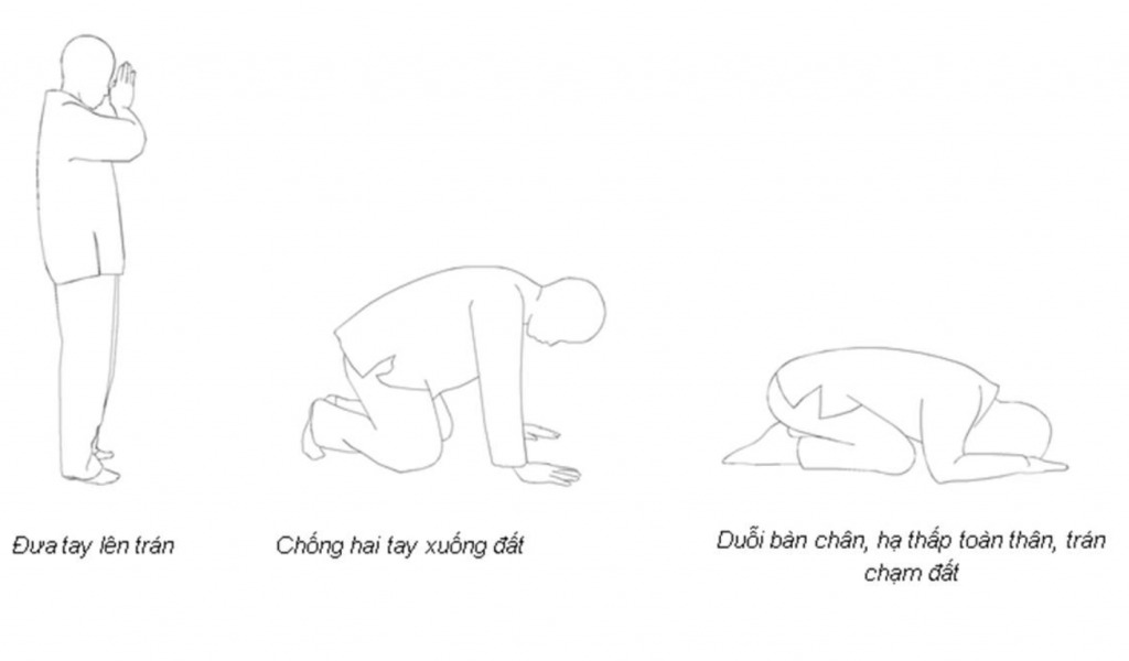 Cứ theo thế đó mà lạy tiếp cho đủ số lạy cần thiết. Lạy xong thì đứng lên và vái ba vái rồi lui ra là hoàn tất thế lạy.