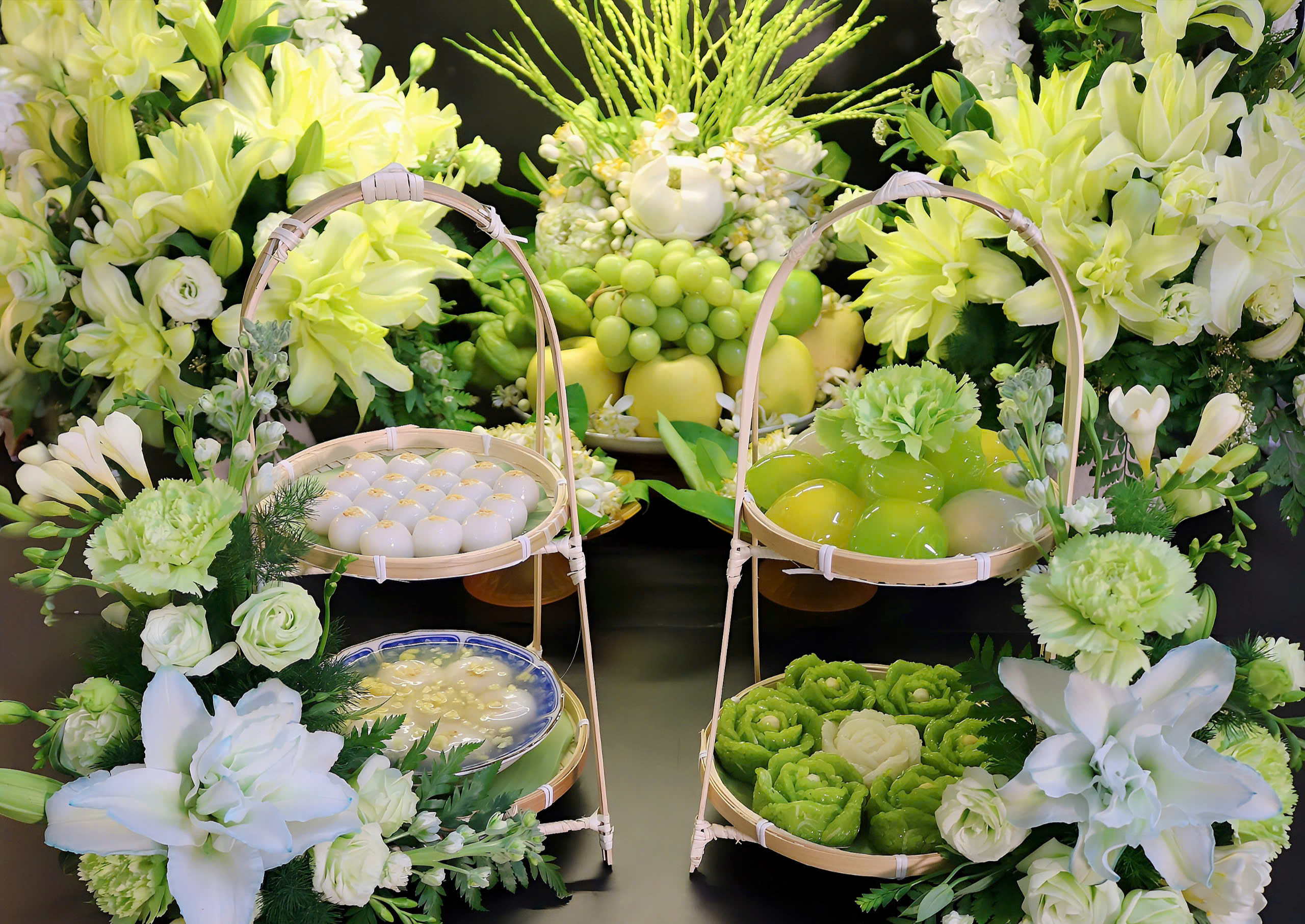 - Hoa tươi – thể hiện sự trang trọng, tôn kính.